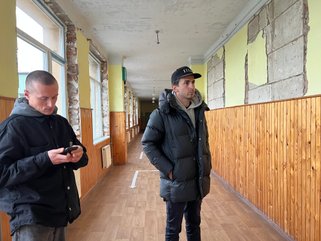 Das Gelände wurde von drei russischen Tieffliegerbomben getroffen. Eine Bombe zerstörte den Haupteingang der Schule. Schuldirektor Viktor, seine Kollegin Olena und die gesamte Dorfgemeinschaft waren sehr bemüht und haben mit außergewöhnlichem Einsatz das Dach bereits reparieren können. Das war wichtig, damit das Gebäude dem Wetter nicht schutzlos ausgeliefert ist und die Substanz des Gebäudes nicht angegriffen wird, bzw. weitere Schäden entstehen.
